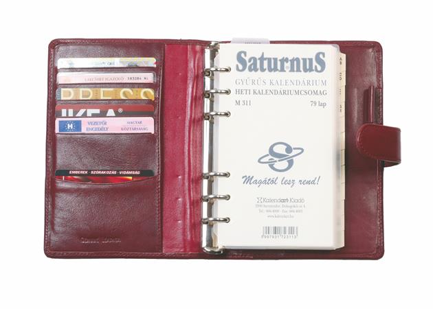 Kalendárium, gyűrűs, betétlapokkal, "L", marhabőr, SATURNUS, "212", fekete