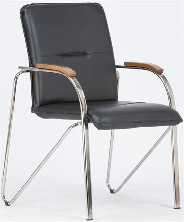 Tárgyalószék, műbőr borítás, krómozott acélváz, diófa karfa, "Sabina", fekete