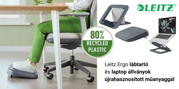 • A LEITZ Ergo Cosy laptoptartó állvány 80%-ban fogyasztás utáni újrahasznosított műanyag felhasználásával készült, a termék szétszerelhető a fém alkatrészek műanyagtól való elválasztásával a 100%-os újrahasznosíthatóság érdekében. Kiváló minőség és hosszú élettartam, hogy segítsen megőrizni a Föld erőforrásait.