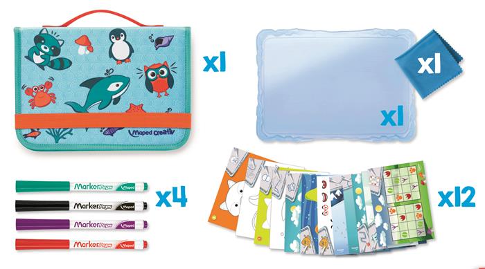 Kreatív készségfejlesztő tábla, utazótáskával, állati móka, MAPED CREATIV "Travel Board"