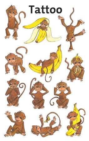 Hová tűnt az összes banán? Pimasz tetoválások, pimasz gyerekeknek! Válaszd ki a kedvenc majmos tetoválásod! Lepje meg gyermekeit fantasztikus tetoválásokkal, amelyek tökéletesek ajándékként, jutalomként, születésnapi partikhoz vagy egyszerűen csak játékként.