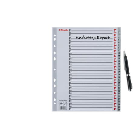 KezdőlapIrodaszerekIratrendezés, archiválásRegiszterekRegiszter, műanyag, A4 Maxi, 1-31, ESSELTE, szürke
