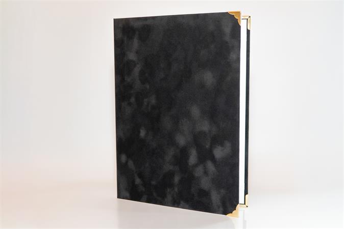 Oklevéltartó, A4, exkluzív, plüss, 4 fém sarokkal, fekete