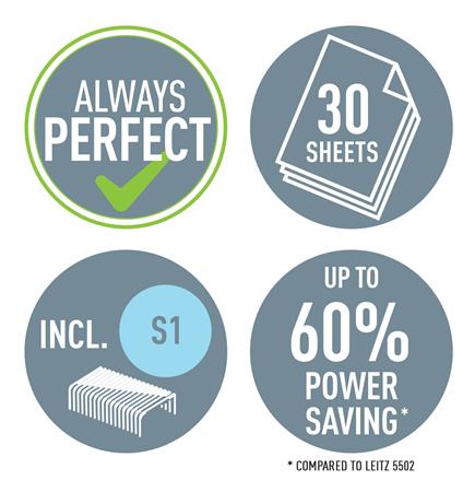a szabadalommal védett Direct Impact technológia és Leitz Softpress tűzőkapcsok tökéletes tűzést biztosítanak minden alkalommal