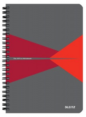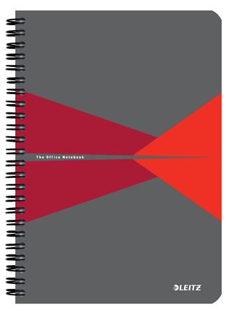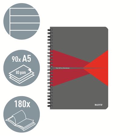 Spirálfüzet, A5, vonalas, 90 lap, laminált karton borító, LEITZ "Office", szürke-piros