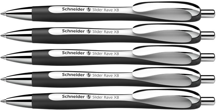 Golyóstoll, 0,7 mm, nyomógombos, SCHNEIDER "Slider Rave XB", fekete-fehér, kék