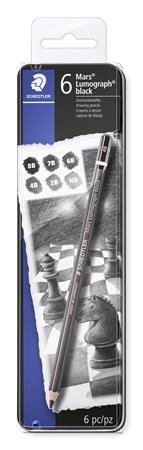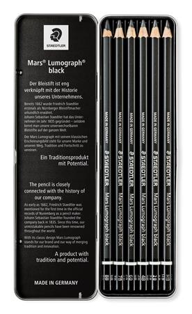 Grafitceruza készlet, fém doboz, hatszögletű, STAEDTLER "Mars Lumograph 100B", 6 különböző keménység, fekete
