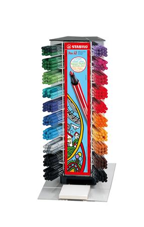 - display tartalma: 6-6 db jégzöld, türkizkék, rózsaszín, orgona lila, sötétzöld, világosszürke, sötétszürke, 12-12 db ultramarin, sötétkék, levél zöld, sárga, barna, sötétpiros, narancssárga, viola, azúr kék, sötét okker, 18 db zöld, 24 db kármin piros, 36 db fekete "Pen 68" rostirón