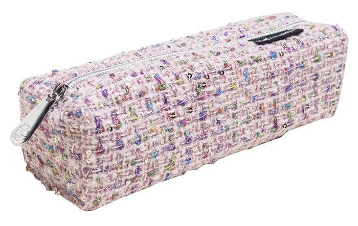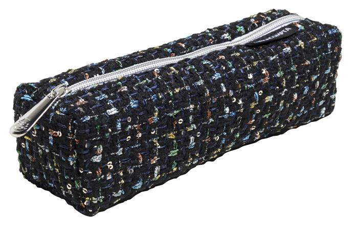 Hímzett flitterekkel díszített szövet tolltartó.