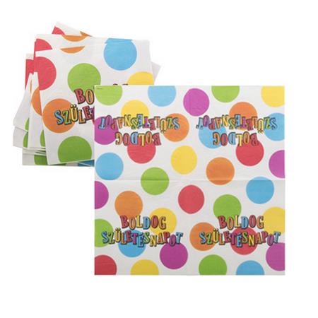 Szalvéta, 33x33cm, "Boldog születésnapot", csíkos-pöttyös