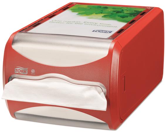 Szalvéta adagoló, 145x191x307 mm, asztalra helyezhető, N4 rendszer, Signature line, TORK "Xpressnap", vörös