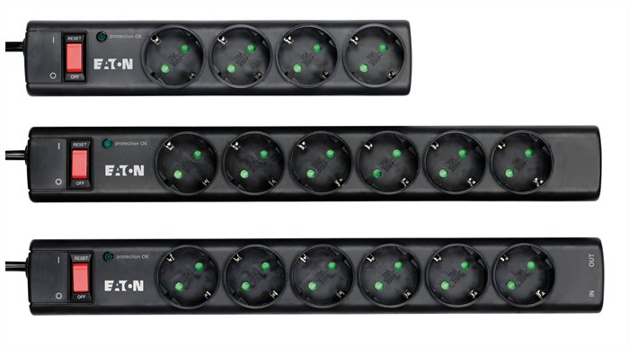 Elosztó, 4 aljzat, túlfeszültségvédő elosztó, EATON "Protection Strip"